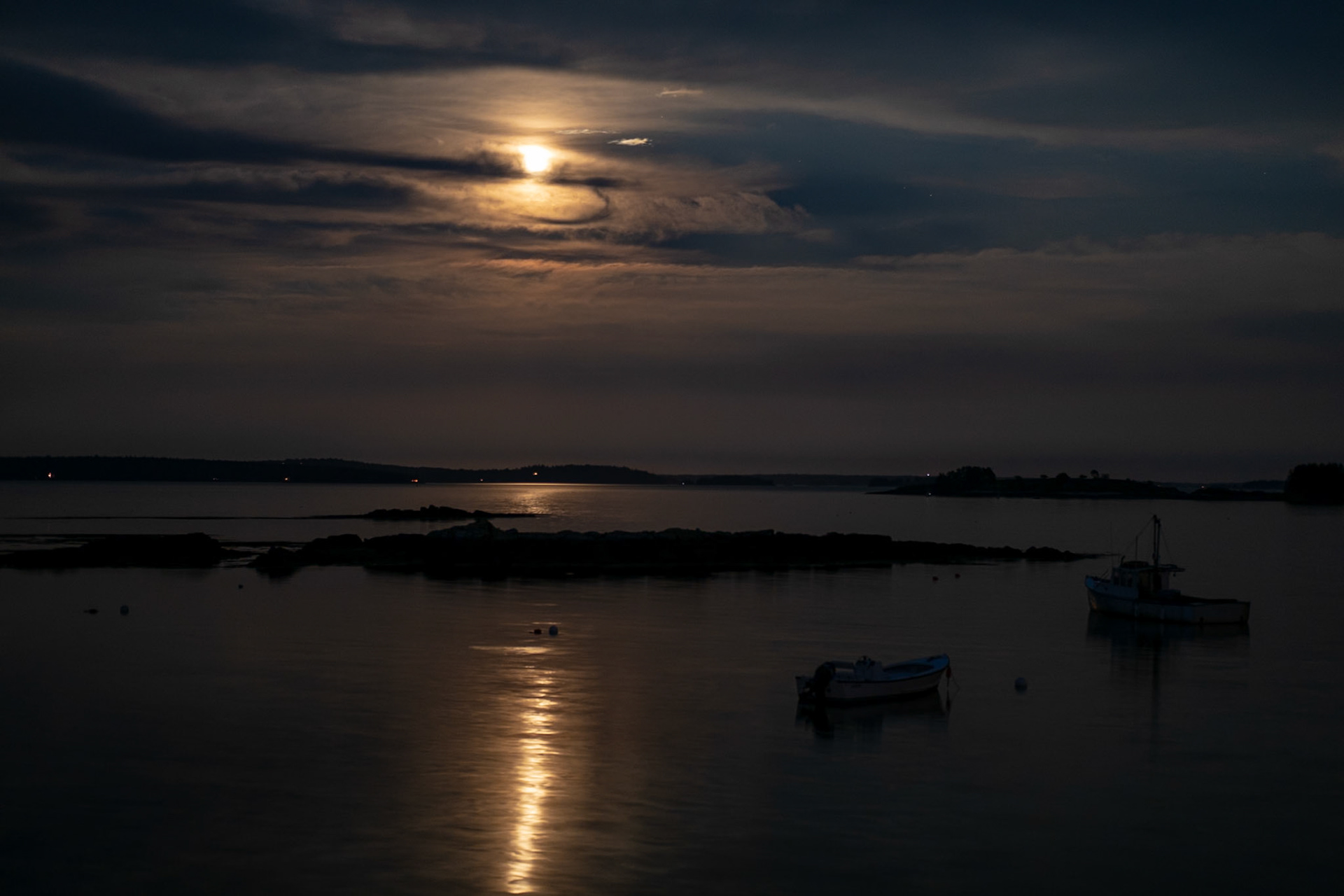 Moonrise over Stand Cove, Hiram Blake Camp